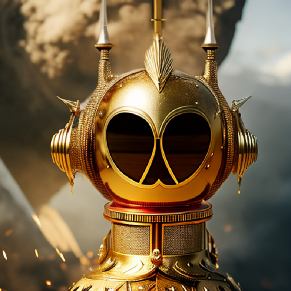 Exclusive design about a Golden Robot portrait. Sci fi Futuristic art.