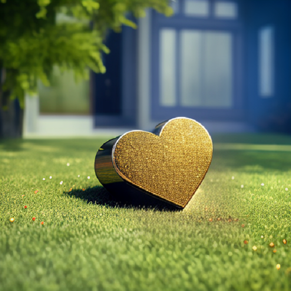 Nice digital image for blogs or magazine. Golden Heart on Green.
